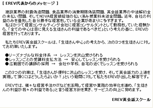 | 生徒さんの英会話力の上達がEREVの唯一の目標です!! | ||